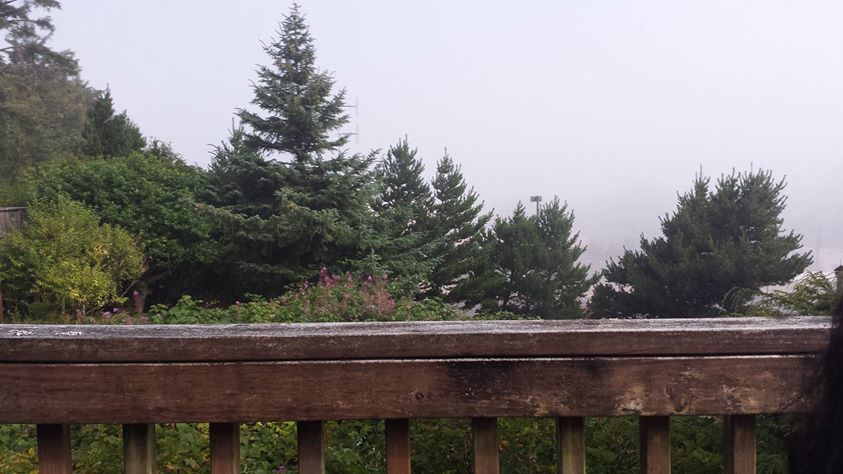 The 2017 eclipse was an experience! It started off as a foggy day so we weren't sure we'd be able to view it at all. The umbra was supposed to hit the North American Continent first near Depoe Bay, which is only about a fifteen minute drive away. We were going to have totality. As we sat on the back deck the fog began to clear above us with about thirty minutes to spare, though at this point visibility was only about one hundred feet horizontally. We could see the sun.